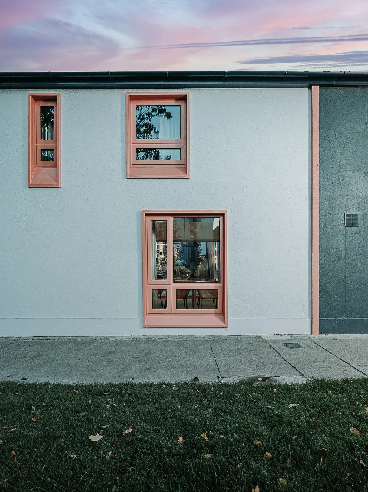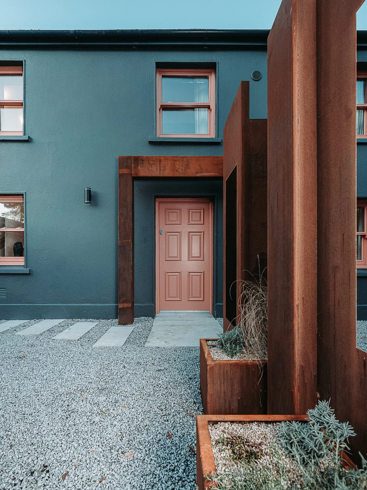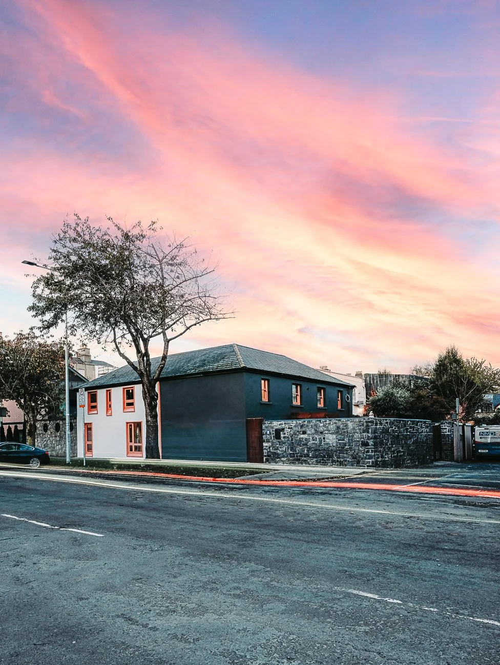 The design blends contemporary details within partial conservation architecture. The house is home to an old Dublin Coach House - which was protected by conservation architecture. Original sash windows and a stone wall built in a traditional method were elements included as part of this conservation process. introducing the coral paint finish to the sash window frames walks the tightrope of modernity and heritage.
